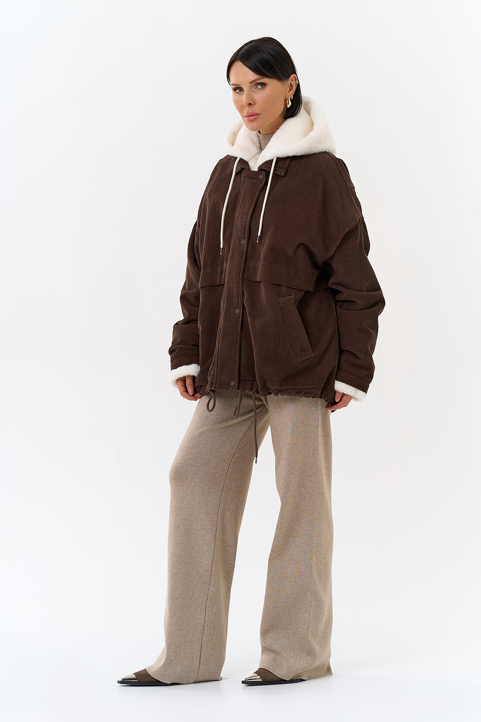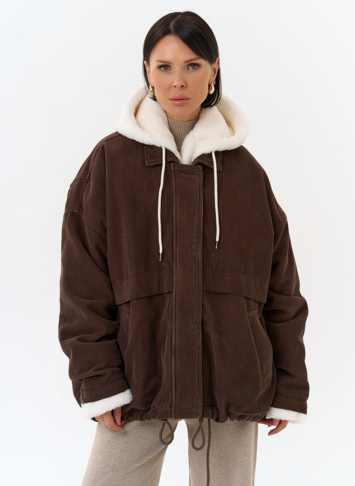 Крой воротника - съемный капюшон, отделка эко мех