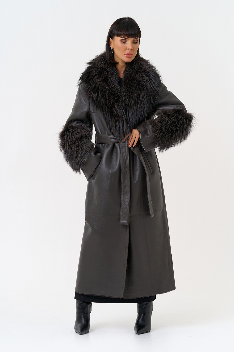 Отделка рукава - мех лисы, цвет серый