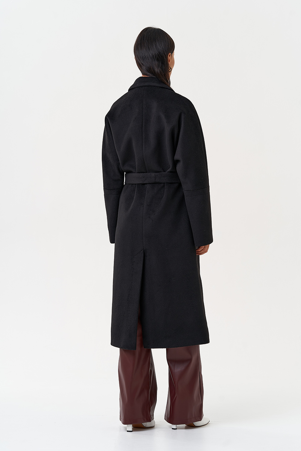Силуэт - прямой Цвет - черный Длина - 115 см Вид полотна - тканое Состав полотна - шерсть 80%, п/э 20% Вид застежки - кнопки Крой воротника - английский воротник Фасон рукава - спущенное плечо, длинный Фасон кармана - прорезной Пояс |